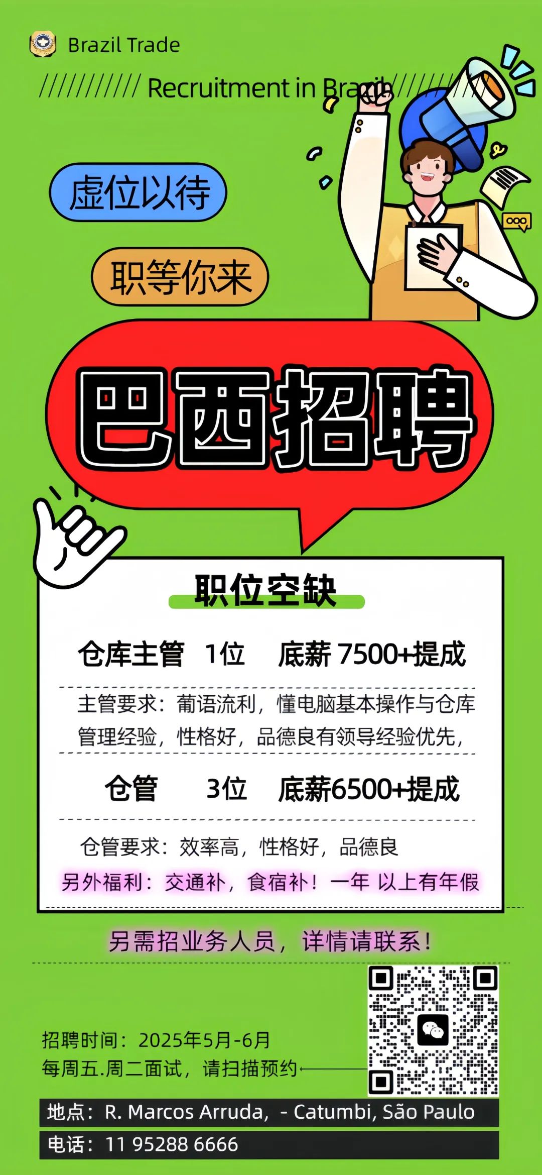 3. **稳定性与职业规划**:长期定居巴西,寻求稳定发展平台,具备团队管理经验或强烈意愿;
