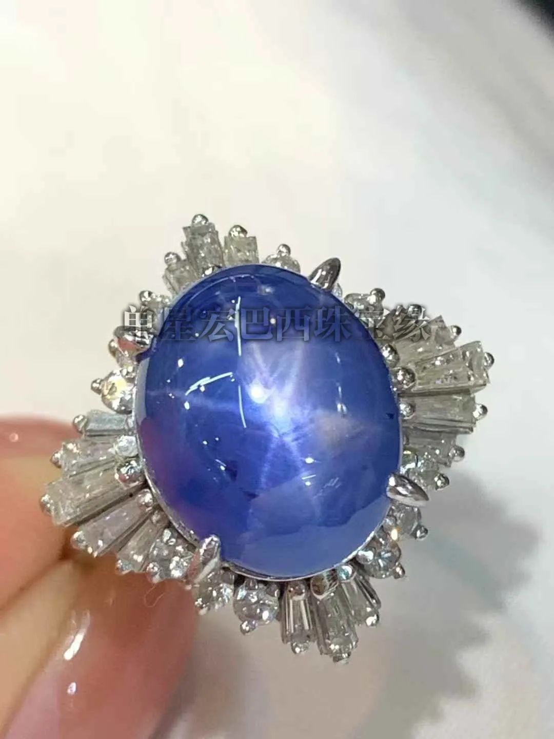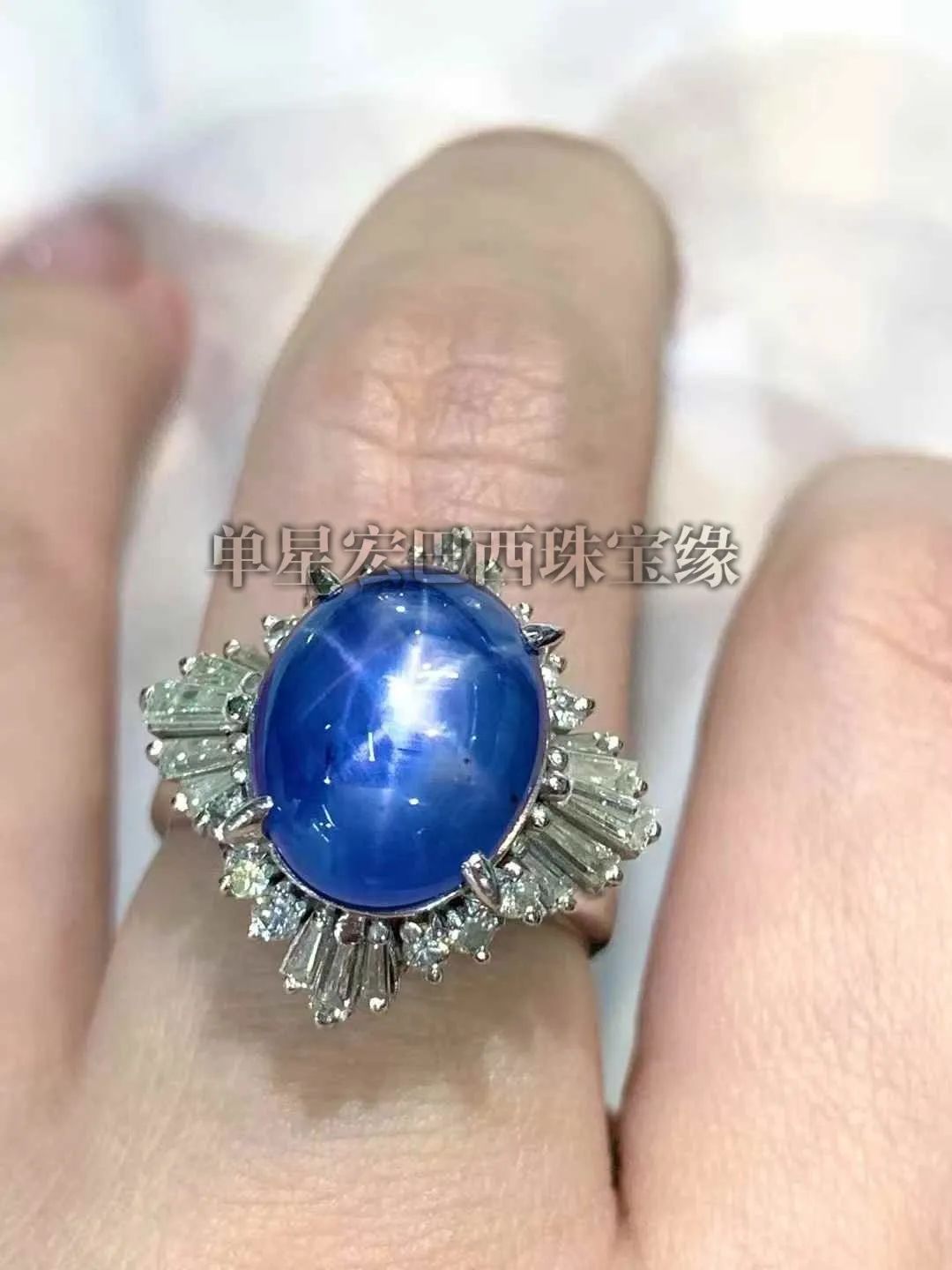 缅甸无烧星光蓝宝-高品质星线漂亮 无烧矢车菊色