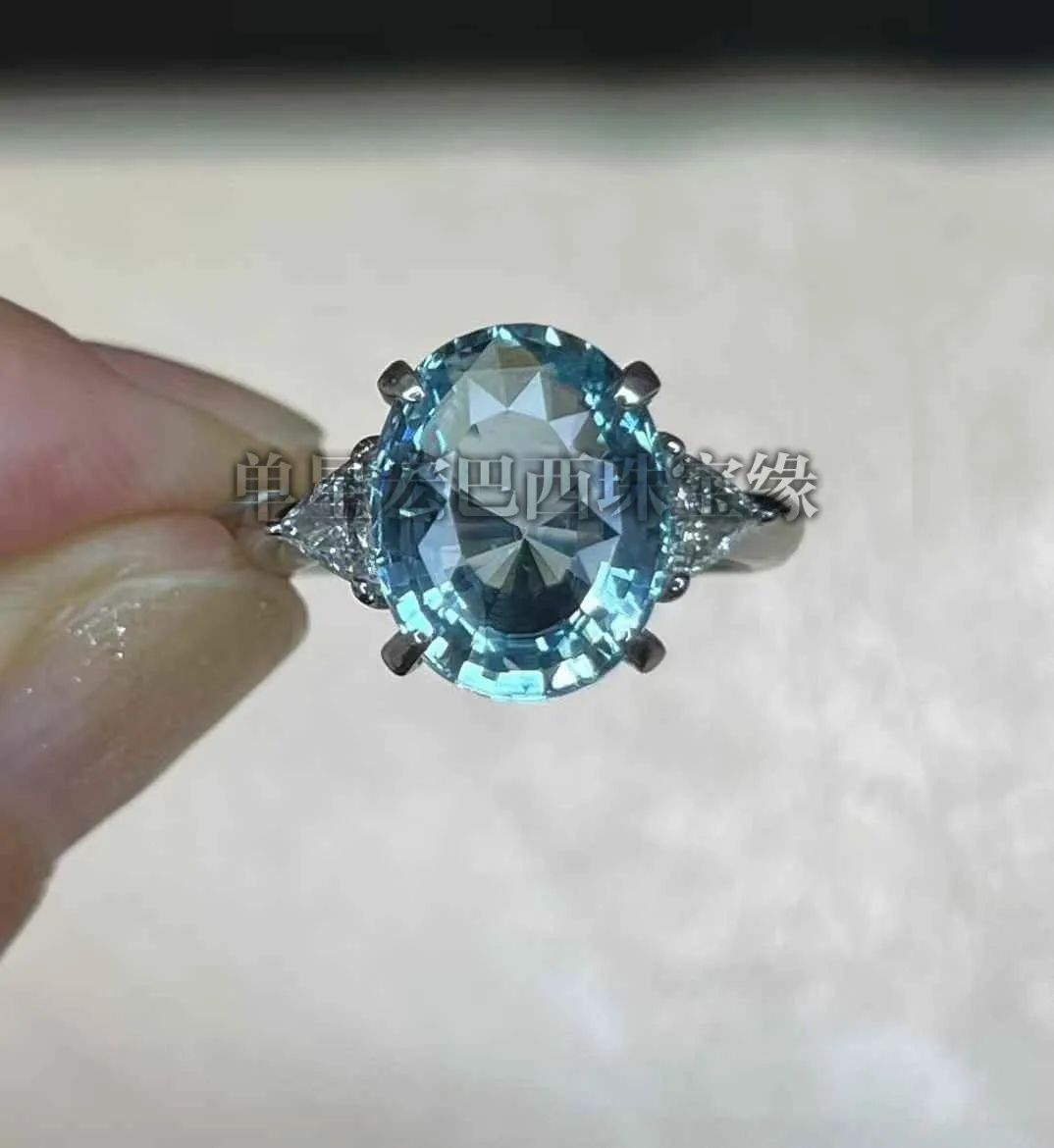 天然海蓝宝钻石铂金镶,颜色和火彩很好!重金!超值! 天然海蓝宝