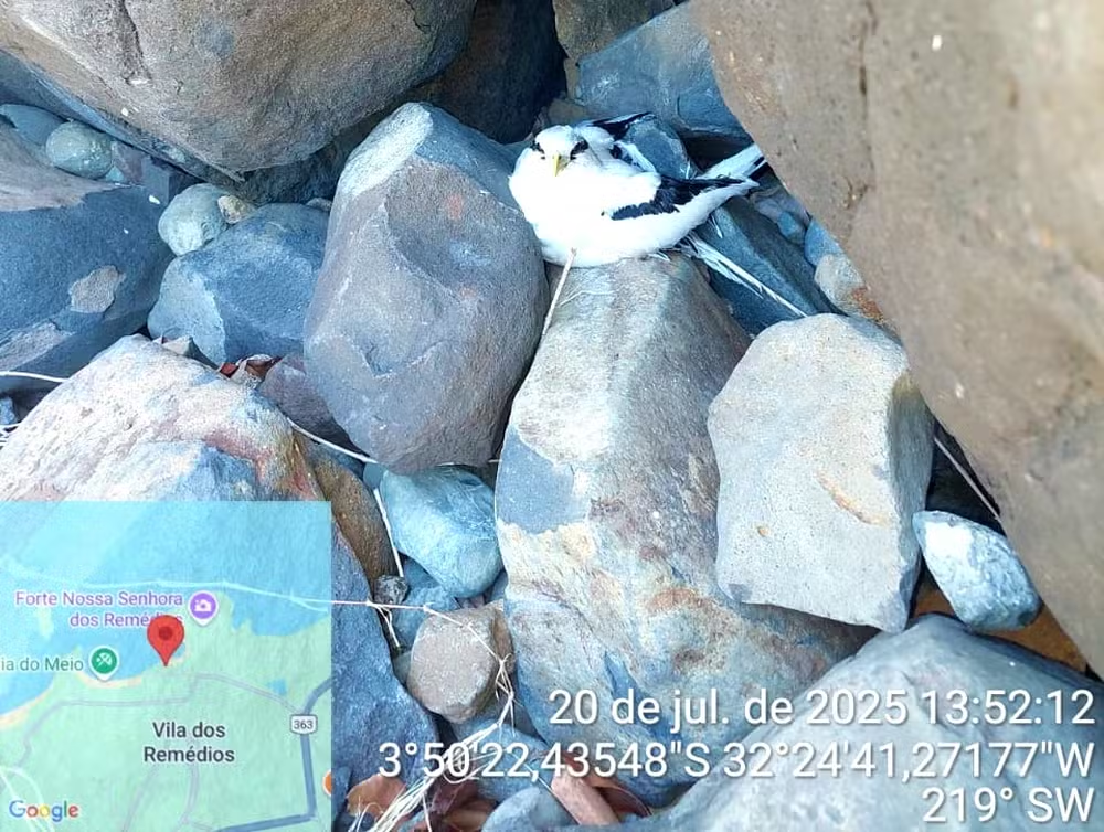 A ave é um rabo-de-junco-de-bico-amarelo (Phaethon lepturus), símbolo do Parque Nacional Marinho. Capturar o animal é considerada uma infração ambiental grave.