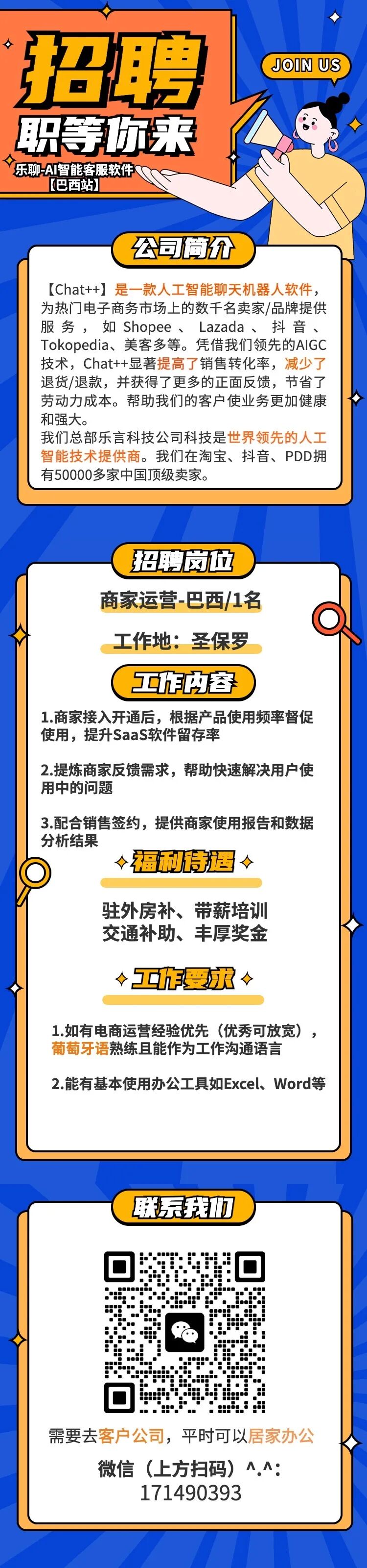 圣保罗高薪聘请财务(有履历基础),网络推销员(要求葡语较好),仓库配货员,前台,工资面谈,另请外州店长,工作地点在外州,工资10000+  有额外提成,要求葡语较好,有上进心,有兴趣的当面私聊,微信zx401263695
