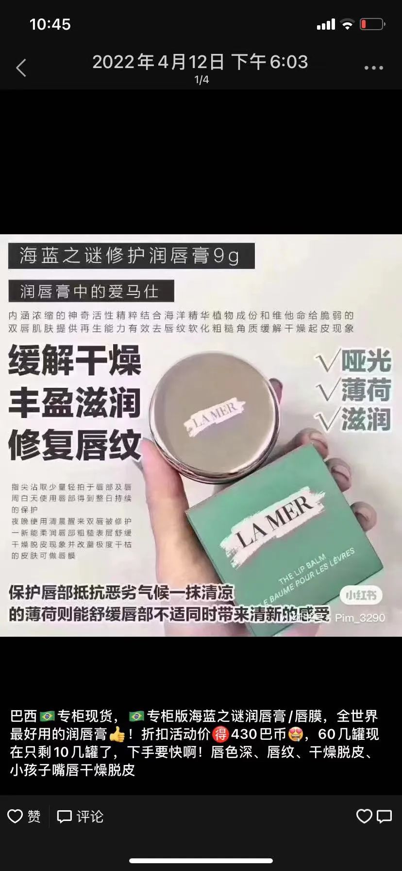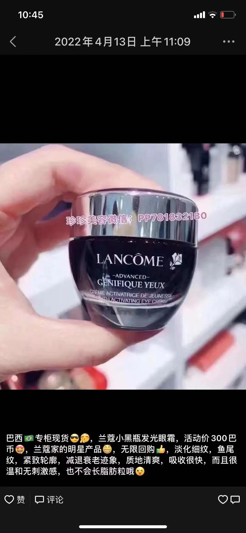 10年老代购,百分百专柜正品护肤品!兼售印尼高品质燕窝,多年实体老店经营!诚信可靠!只售专柜版护肤保养品!有专柜版海蓝之谜Lamer、专柜版La prairie莱珀妮鱼子酱,兰蔻、希思黎、资生堂、娇兰、雅诗兰黛、日本本土版SK- II、CPB贵妇品牌等等,欢迎新老顾客们尽情下单,每天都在送货25街、bras、pari、电器街、日本街、Paulista附近等等,也有邮寄外州城市!