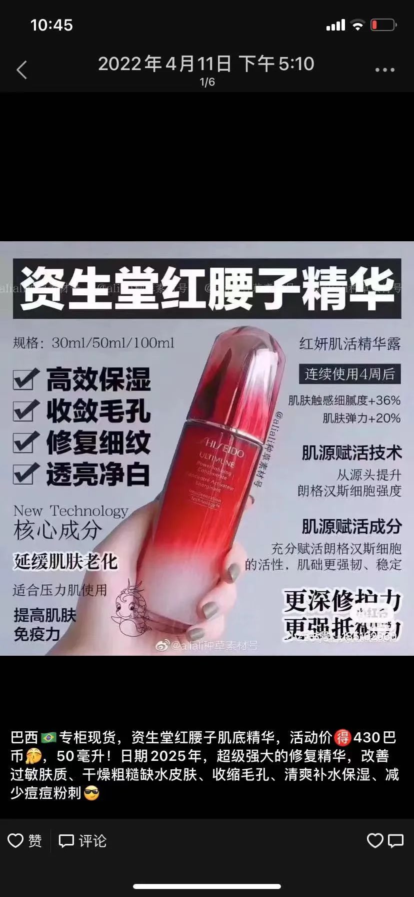 巴西10年老代购,实体老店!诚信可靠!护肤品巴西专柜版现货,百分百专柜正品!